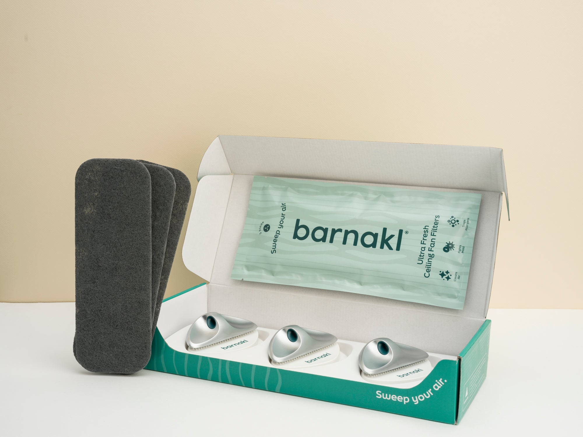 Barnakl's innovative ceiling fan filters transform the everyday ceiling fan into a potent air purifier. By harnessing the air circulation of ceiling fans, it offers continuous cleaner air. In a landscape where air quality solutions often carry hefty price tags, Barnakl emerges as a beacon of affordability and effectiveness.