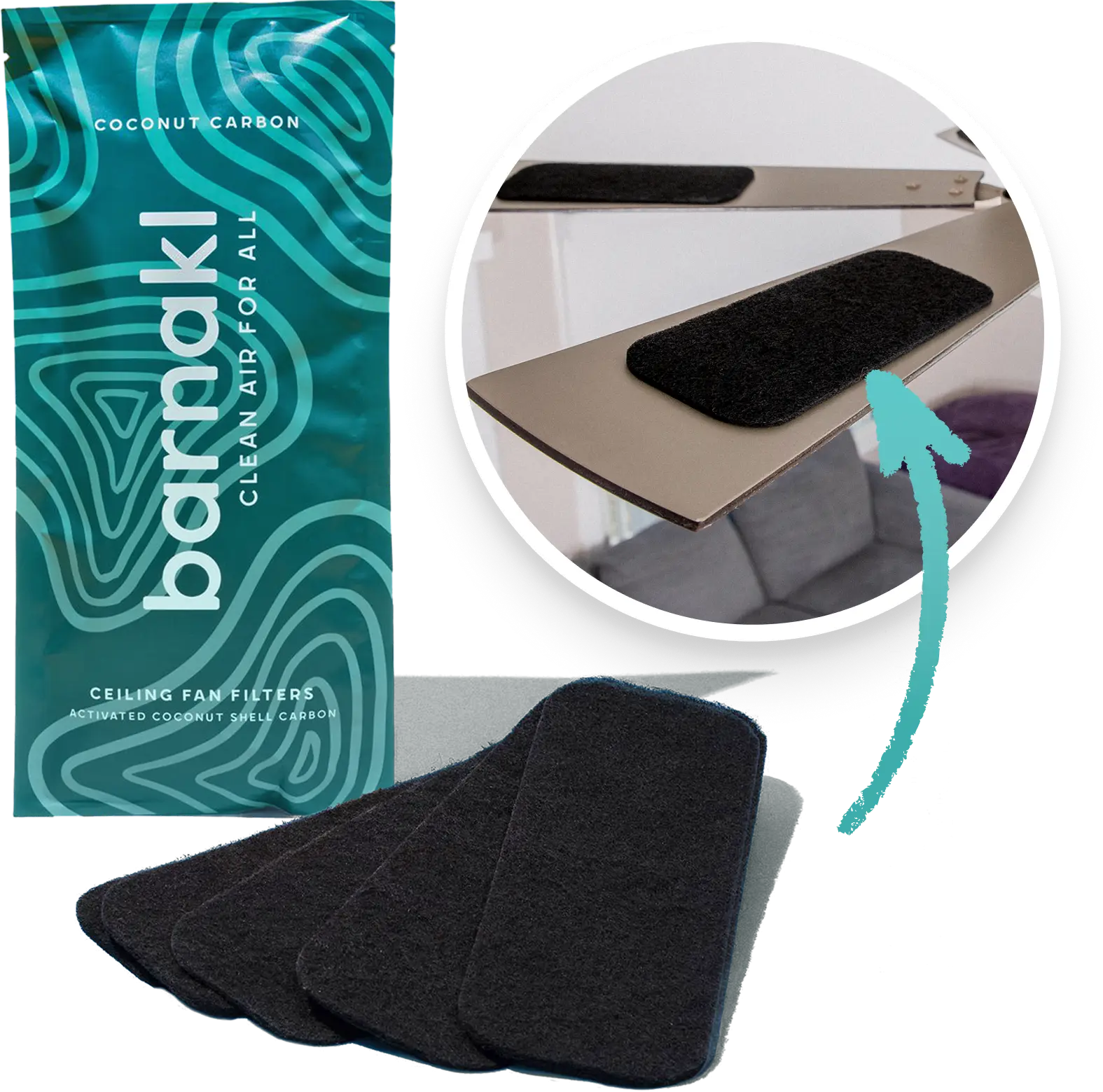 Barnakl filters turn any ceiling fan into an air purifier that removes harmful airborne allergens, pollutants, and mold from every room in your home.
